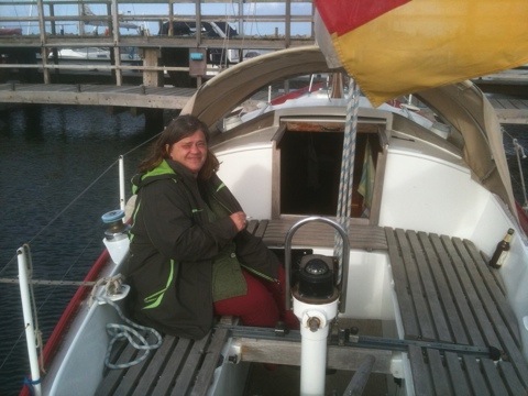 Fest in Damp. Der Hintern der Dirk schaut etwas raus, aber es waren nur noch Plätze vor dem Wind am Gästesteg frei. Für Sahira war die erste Fahrt auch hart mit bleichen Gesicht. Im Hafen scheint die Sonne wieder – und es gibt Crepes. Over today