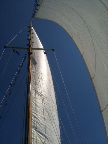 Nach 4 Stunden motoren kommt Wind auf und auch aus der richigen Richtung. Segeln.
