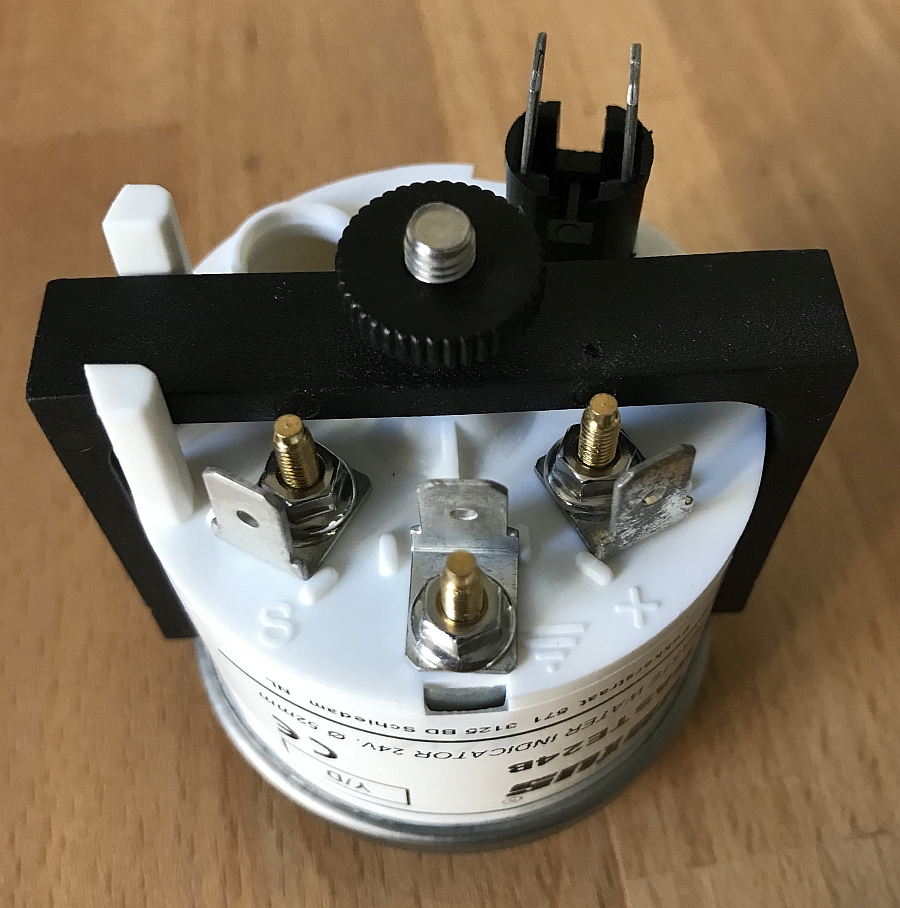 Unter im Bild die 4 Anschlüsse von links nach rechts für +12V, Masse, Sensor, Licht.