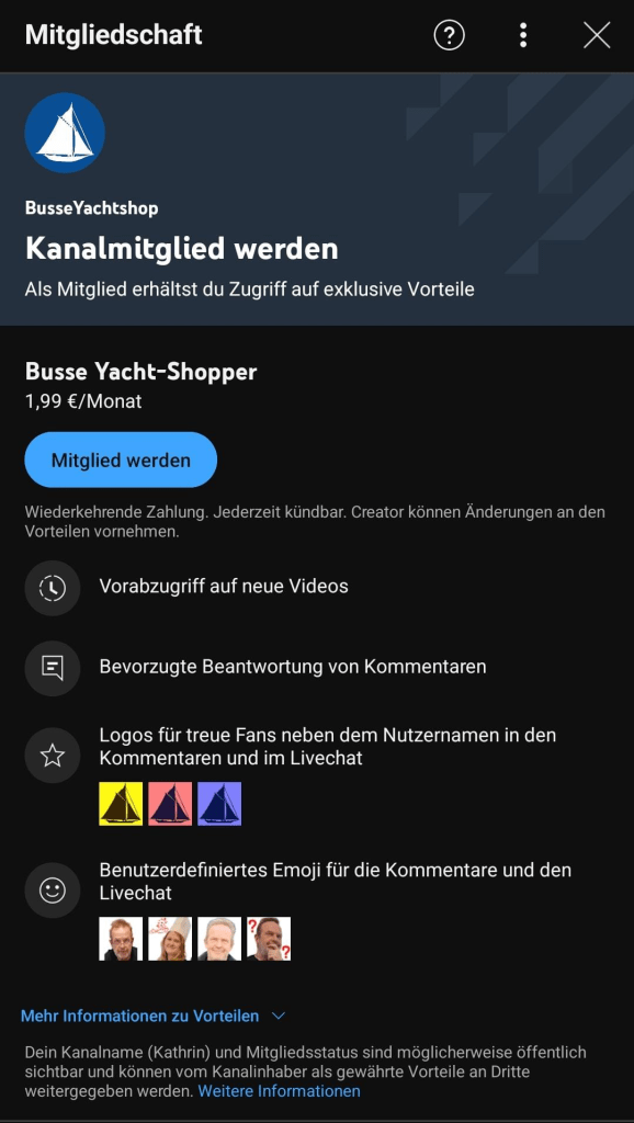Zusätzlich zu unserem Kanal-Abo haben wir jetzt eine Kanalmitgliedschaft eingeführt! Für nur 1,99 € im Monat könnt ihr ein „Busse Yacht-Shopper“ werden. Mit dieser Mitgliedschaft unterstützt ihr uns direkt und profitiert von einigen coolen Extras: